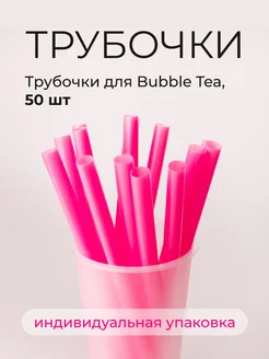 Трубочки широкие заостренные для бабл ти РОЗОВЫЕ 50 шт