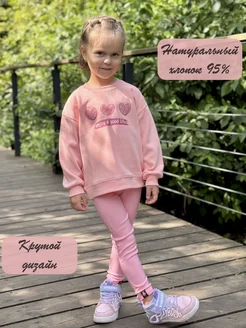 Свитшот из хлопка базовый лонгслив с принтом сердечки
