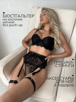 Нижнее белье кружевное комплект с чулками и поясом