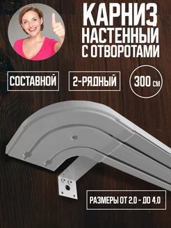 Карниз настенный 300см с пазом для бленды и фурнитурой