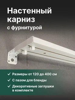 Карниз настенный 120см с пазом для бленды и фурнитурой