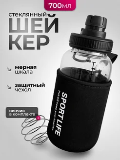 Стеклянный шейкер спортивный Бутылка для протеина и воды 700