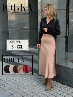 Юбка атласная миди офис на резинке