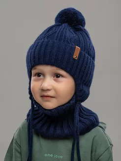 Шапка и снуд зима с ушками и завязками