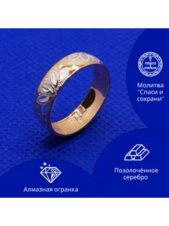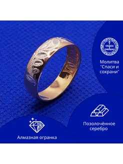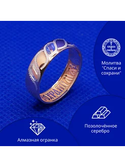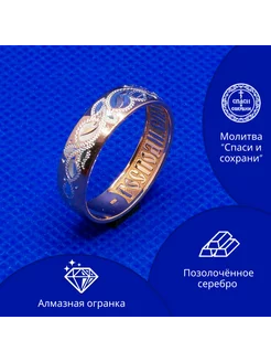 Кольцо женское серебряное с позолотой Спаси и сохрани