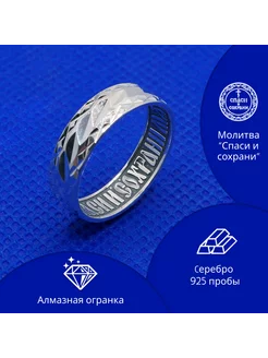 Кольцо "Спаси и Сохрани" мужское, женское, серебро 925 пробы