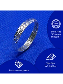 Кольцо "Спаси и Сохрани" женское, мужское, серебро 925 пробы