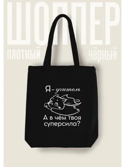 Шоппер тканевый на молнии с надписью для учителя