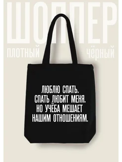 Шоппер тканевый на молнии с надписью "Люблю спать"
