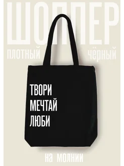 Шоппер тканевый на молнии с надписью "Твори. Мечтай. Люби"