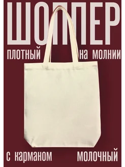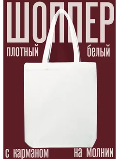 Шоппер плотный тканевый на молнии без рисунка для росписи