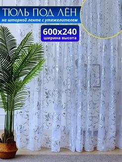 Тюль в гостиную спальню длинный под лен 600х240 готовый