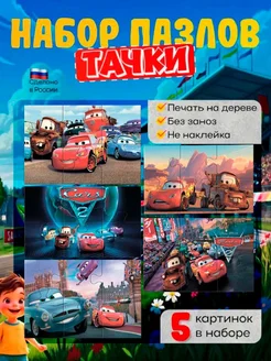 Пазлы деревянные крупные для детей тачки маквин 5шт