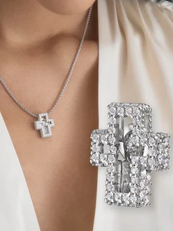 Крестик на шею серебро 925 ювелирная подвеска с камнями