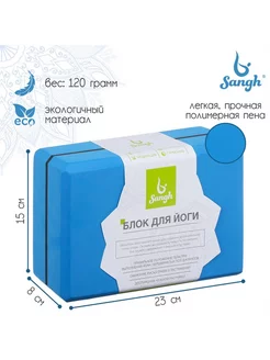 Блок для йоги Sangh, 23х15х8, цвет синий