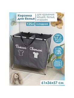 Корзина для белья складная двойная Доляна "Тёмное и Светлое"