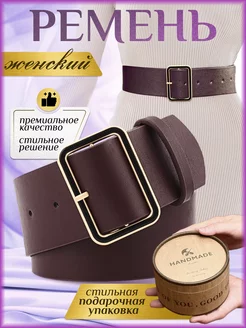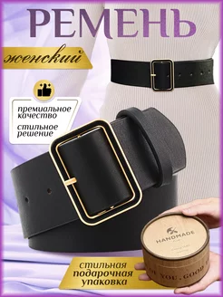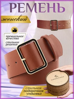 Широкий женский ремень из экокожи в подарочной коробке