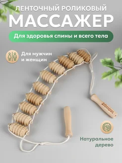 Массажер деревянный роликовый, ленточный, для спины, шеи и в…