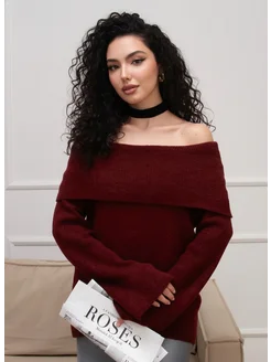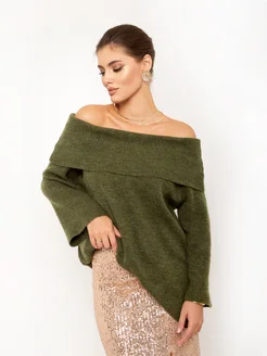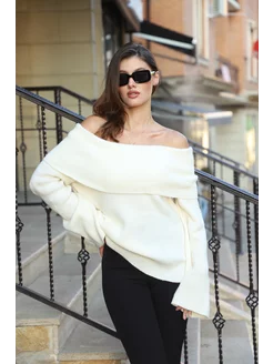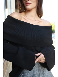 свитер вязаный оверсайз с открытыми плечами