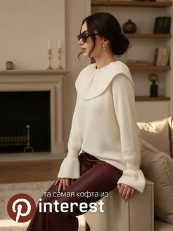 Свитер оверсайз вязаный с воротником и воланами