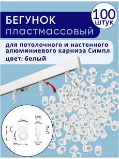 Бегунок для карниза пластмассовый, Симпл 100 шт