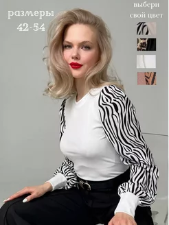 Блузка нарядная с длинным пышным рукавом зебра