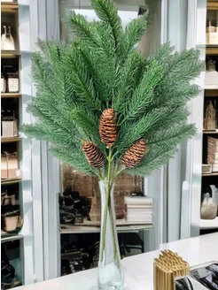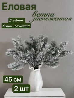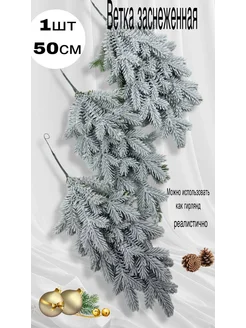 Искусственная еловая ветка заснеженная новогодняя для декора