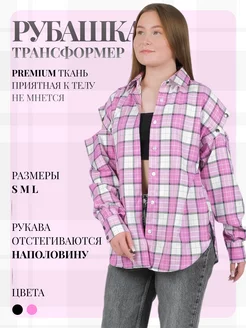 Рубашка хлопковая в клетку с отстегивающимися рукавами