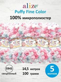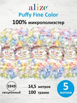 Пряжа плюшевая Ализе Пуффи Puffy Fine Color 100г 5шт. 5945