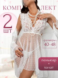 Пеньюар белый кружевной с халатом комплект