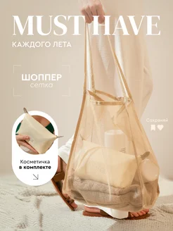 Шоппер большой пляжный с косметичкой сетка