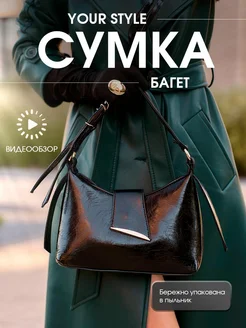 Сумка женская маленькая чёрная мини-багет
