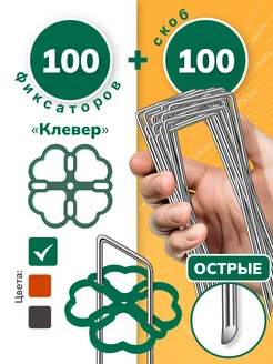 Скобы садовые с фиксатором (зеленый) 100 шт
