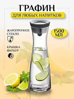 Графин для воды сока кувшин стеклянный с крышкой 1,5 л