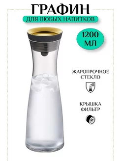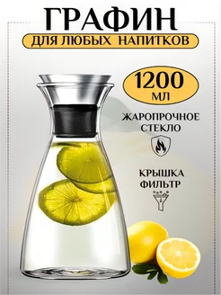 Графин для воды сока кувшин стеклянный с крышкой 1,2 л