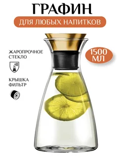 Графин для воды сока стеклянный с крышкой 1,5 л