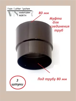 Муфта водосточной трубы 80мм коричневая 3 шт