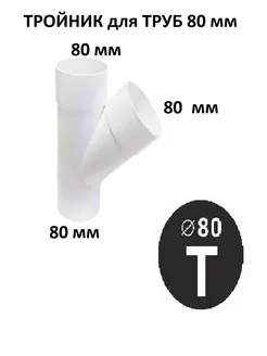 Тройник водосточной трубы ПВХ 80 мм (на 45 гр.), белый-1 шт