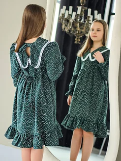 Теплое осеннее зеленое фланелевое платье с длинным рукавом
