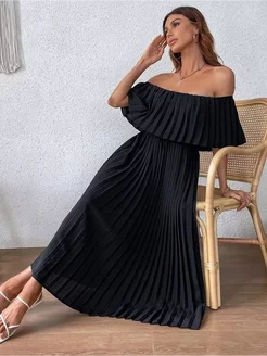Платье вечернее праздничное для офиса с юбкой плиссе