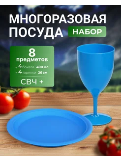 Пластиковые Бокалы с Тарелками на природе, пикнике