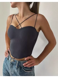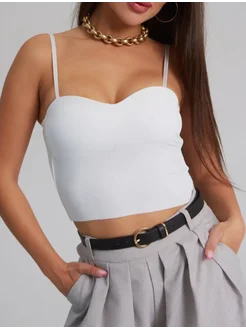 Вечерний топ на бретелях бежевый укороченный под пиджак