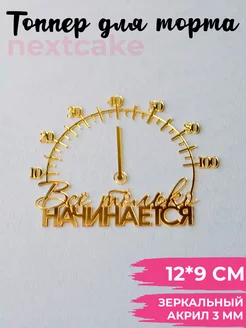Топпер для торта Всё только начинается 12 см золотой акрил
