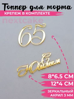 Топпер С Юбилеем цифра 65 зеркальный акрил