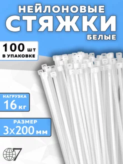 Пластиковые стяжки - хомуты для дома 3х200мм Белый
