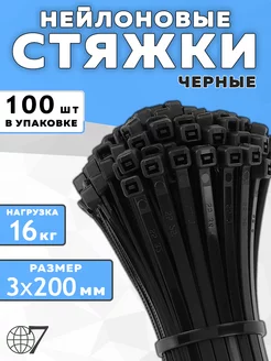 Пластиковые стяжки - хомуты для дома 3х200мм Черный