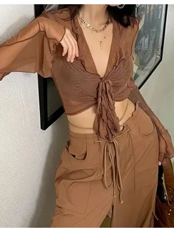 Топ y2k с воланами рюши кофта топ с рукавами клеш