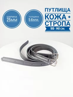Путлища для лошади из кожи и строп 150 см ход 100-140 чёрные