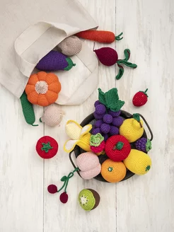Вязаные ягоды, овощи и фрукты. Игрушечная еда, набор 20