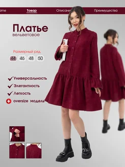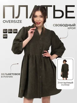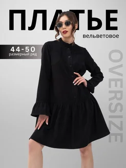 Платье вельветовое праздничное мини на пуговицах oversize